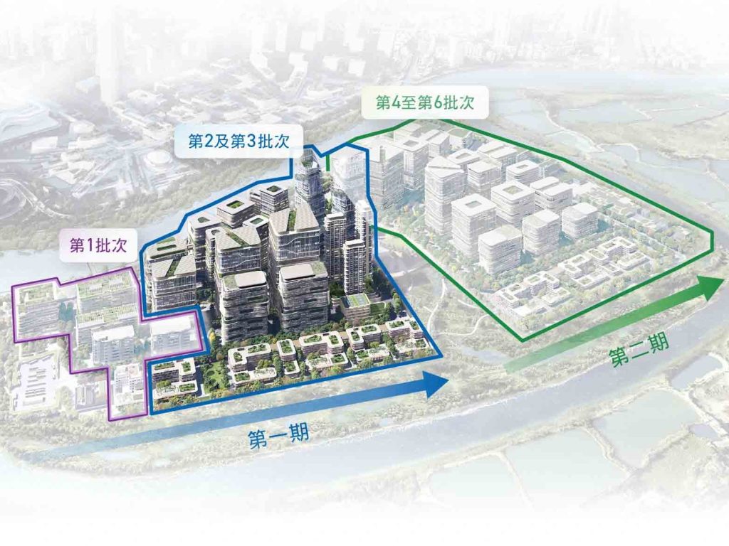 河套深港科技創新合作區位處深圳河兩側,包括87公頃的香港園區及300公頃的深圳園區;香港園區由西至東分兩期發展,合共提供約200萬方米的總樓面面積。翻查官方資料,港深創新及科技園(HSITP)第一期樓面面積100萬方米,旗下細分為3批次發展。第一批次共有8座樓宇,樓面面積11.65萬方米。