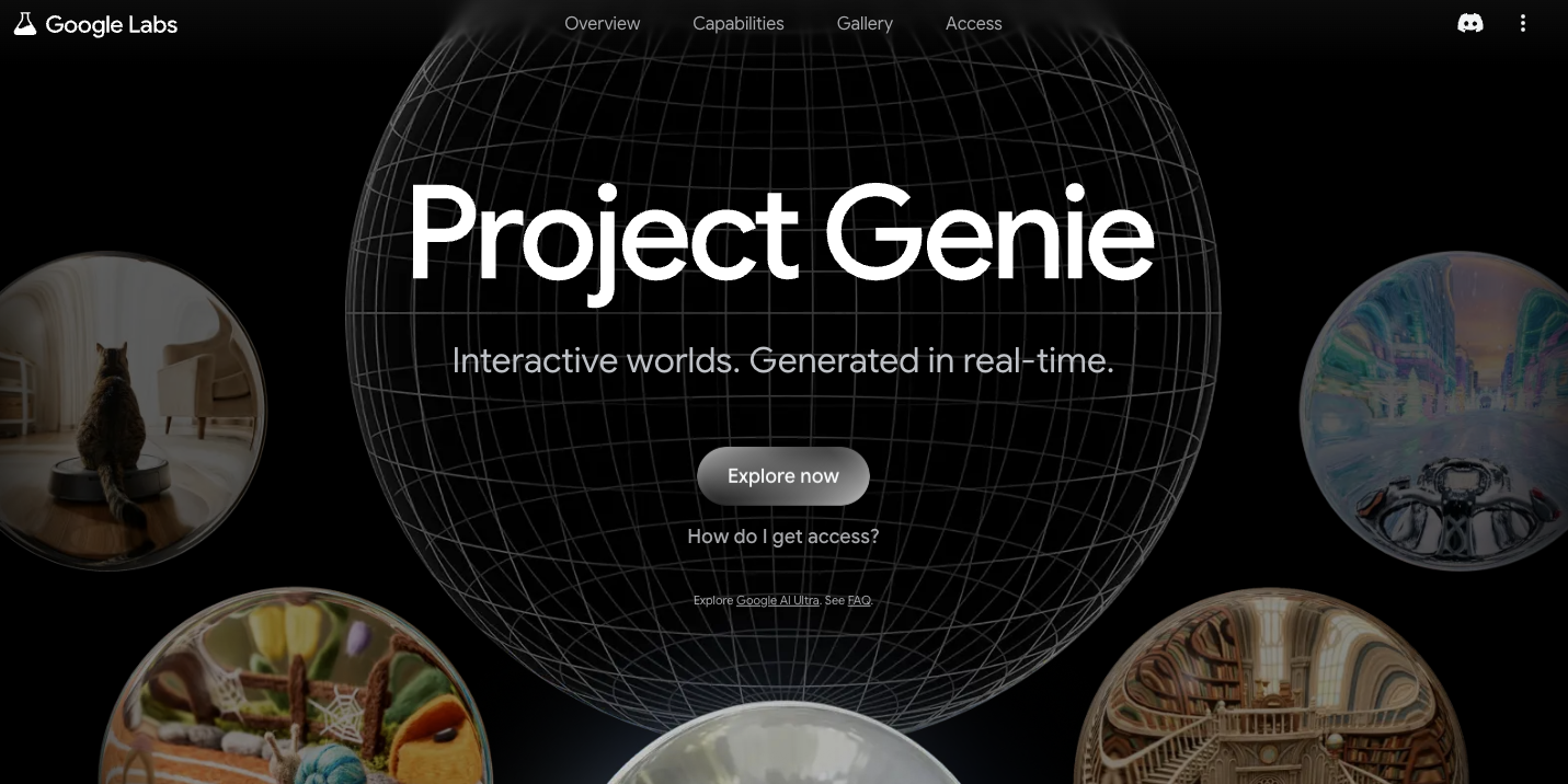 Alphabet旗下Google在1月底毫無預警地推出實驗性人工智能(AI)工具Project Genie。(官網截圖)