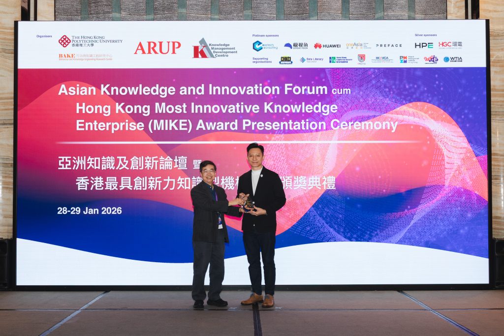 筆者團隊創立的OpenCertHub Academy在2026年1月獲得由理工大學 BAKE頒發的 ”Hong Kong Most Innovative Knowledge Enterprise (MIKE) Award” 獎項, 亦已連續3年獲得此殊榮。(作者提供圖片)
