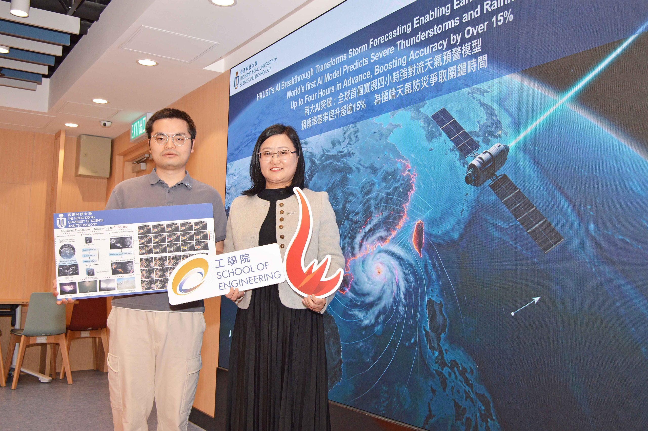 科大團隊研發人工智能模型,聲稱可提前4小時,預警危險的強對流風暴;左起為代快、
