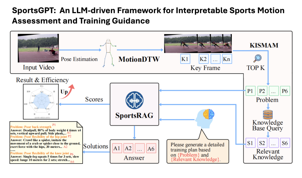 然而,市場潛力要真正轉化為專業價值,仍有賴於實際可落地的技術方案。現有不少運動人工智能系統,主要集中於動作評分與結果可視化,但在自動化性能診斷與可解釋訓練指導方面,仍有不足之處。隨着大語言模型 (LLM) 與運動科學的結合日益深化,新的整合方法正逐步突破這些限制。去年 12 月,中國科學院大學、中國科學院自動化研究所及北京體育大學等機構聯合發表的研究,提出了 SportsGPT——一個基於大型語言模型,以可解釋性為核心的體育運動評估與訓練輔助框架。