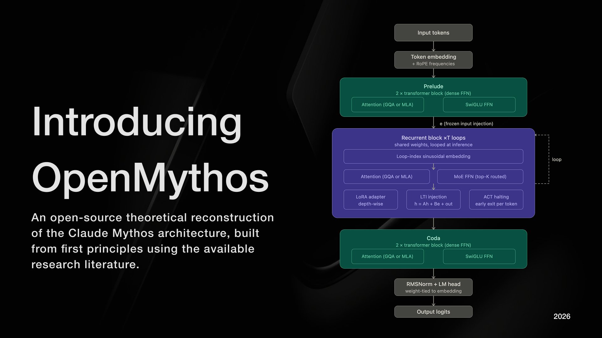 不過,22歲的Swarms智能體框架創辦人戈麥斯(Kye Gomez),近日聲稱成功「逆推」及開源Claude Mythos的核心架構,他開發基於PyTorch的OpenMythos,專案發布在代碼託管平台GitHub。