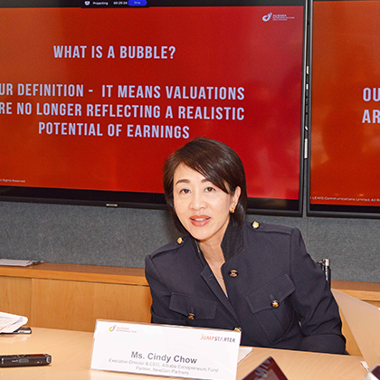 阿里巴巴香港創業者基金執行董事兼行政總裁周駱美琪,昨天介紹環球創業比賽JUMPSTARTER 2026細節。