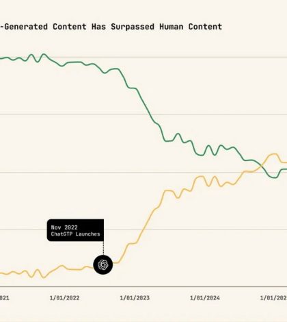 美國搜尋引擎改良公司Graphite最近發表報告,評估人工智能(AI)生成文章在網上的普及程度,結果發現其數量已在去年11月超越人手撰寫的文章。