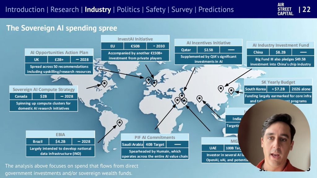 英國風投Air Street Capital及人工智能(AI)投資者貝奈奇(Nathan Benaich),日前聯合發表年度《2025年人工智能現況報告》。報告從研究、產業、政治、安全等角度,分享觀察到的最有趣現象,除了對去年的預測績效評估,亦會預測未來12個月將發生的事情。