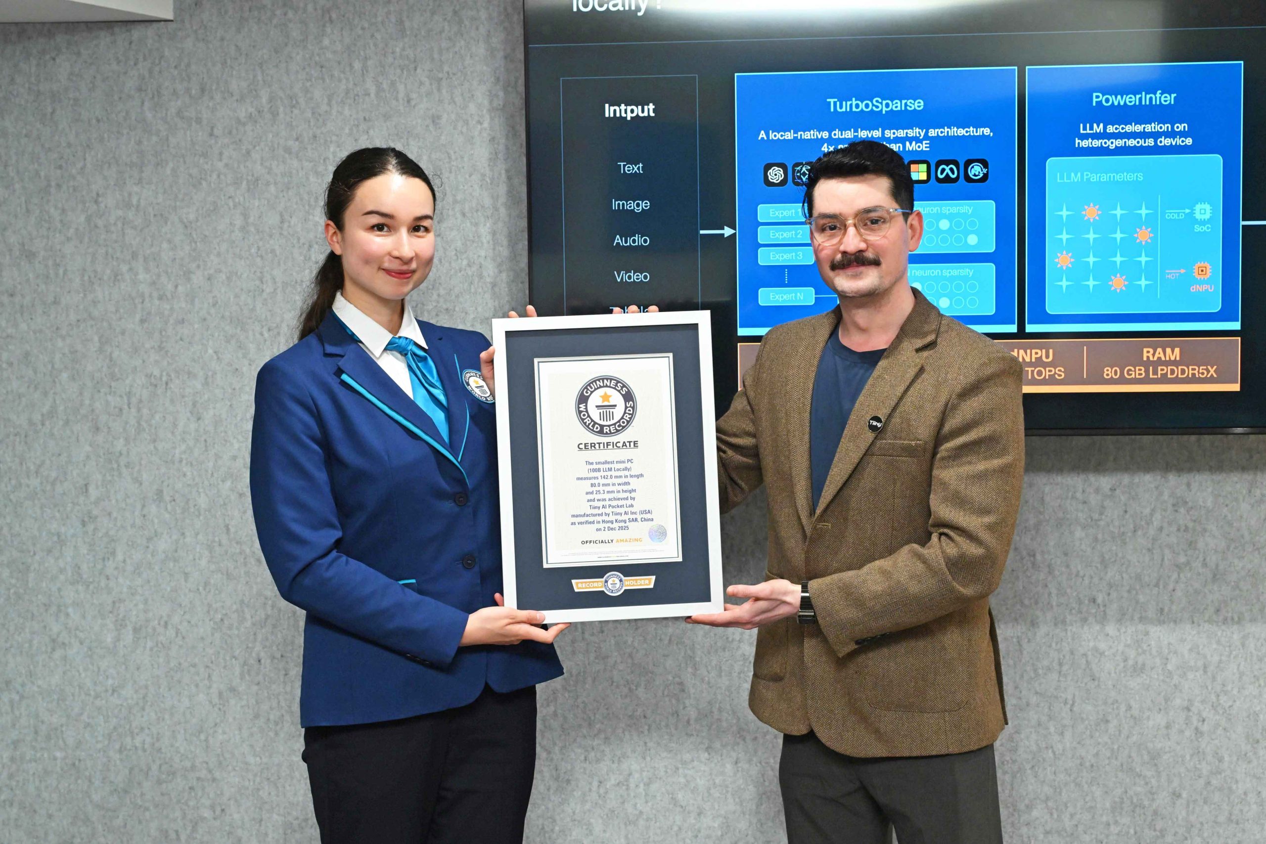 美國硬科技人工智能(AI)初創Tiiny AI Inc.發布個人AI超級電腦Tiiny AI Pocket Lab,為全球首個可運行1200億參數(120B)大型語言模型的口袋級設備,具備可媲美GPT-4o的智能水準。而且全程毋須依賴雲端、伺服器或高端圖像處理器(GPU),獲健力士世界紀錄認證為「全球最小迷你電腦(可本地運行千億級大語言模型)」。