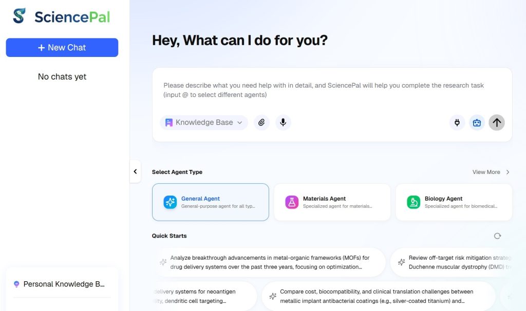 SciencePal合作夥伴包括清華大學智能產業研究院(AIR)、上海人工智能實驗室及南京師範大學,聯合打造蛋白質設計人工智能體Amix-Agent。團隊亦研發材料科學智能體,能自主執行材料研究整個流程的複雜任務,例如材料性能預測、實驗設計優化等,並覓得約束條件下的最佳配方。