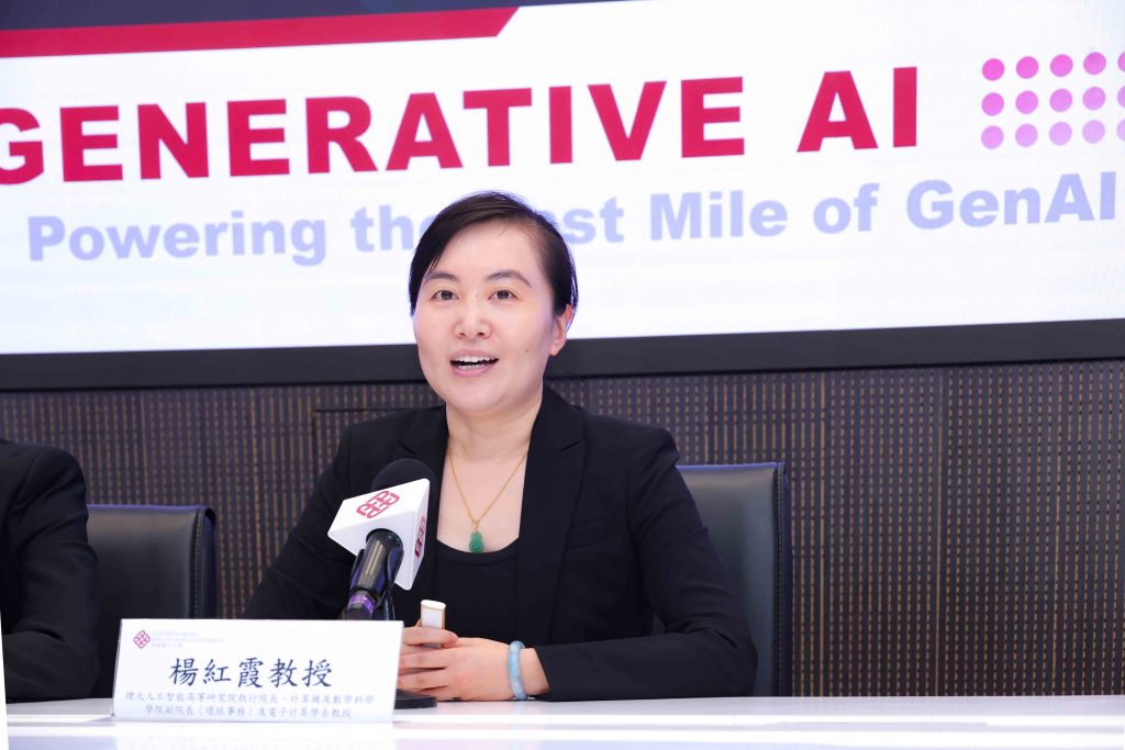 理大PAAI執行院長、計算機及數學科學學院副院長(環球事務)及電子計算學系教授楊紅霞指出:「以超低資源實現基礎模型訓練,加上高效模型融合,可助全球學術人員投入生成式AI(GenAI)研究。」