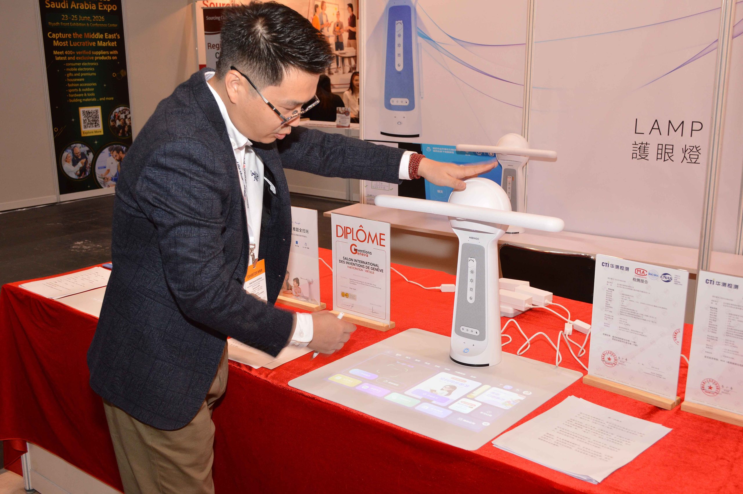 商用及文書處理方面,香港優創品科技有限公司在現場示範多款AI大模型翻譯器,支援16國人員通話翻譯,硬件可吸附手機背面,強調「終身免費使用」。