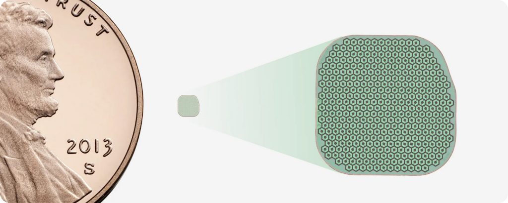 PRIMA植入物有378個光動力像素,尺寸僅2毫米×2毫米,晶片需要植入在視網膜下。患者需要佩戴有鏡頭的擴增實境眼鏡,相機會將紅外線視訊影像,傳送到眼球後部的晶片,再將影像傳送腰間的袖珍電腦,人工智能演算法把影像增強後,把電流脈衝發送到視神經細胞,再傳回患者大腦恢復視力。研究成果發表在《新英格蘭醫學雜誌》,接受手術的32名患者中,27人能夠再次使用中心視力閱讀,相當於84%患者能夠透過義眼,閱讀字母、數字及單字。