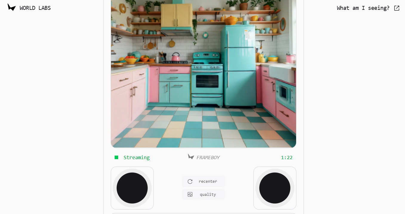 世界實驗室設立一個演示網站(rtfm.worldlabs.ai),供網民排隊試玩FTFM模型。研發團隊在網誌強調,生成式世界模型的運算需求極高,遠超當今的大型語言模型(LLM)。假設以每秒60幀率速度(60FPS)計算,要生成互動式的4K影像串流,每秒需要產生超過10萬個詞元(Token),相當於《哈利波特》首部小說的長度;要讓這些詞元持續生成一小時或更長時間,需要涉及超過一億個詞元的上下文。考慮到當今的運算基建,做法不可行也不划算。