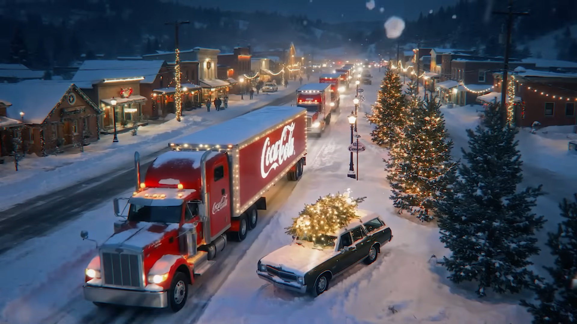 美國可口可樂(Coca-Cola)早於去年聖誕,已嘗試以人工智能(AI)製作宣傳片,但由於其效果及損害就業等理由,遭創意專業人士批評。可口可樂今年再推出新AI廣告,紅色送貨卡車的車輪看似轉動,而並非像去年那樣滑行。2024年神情恍惚的人類形象,已被種類繁多的動物取代。