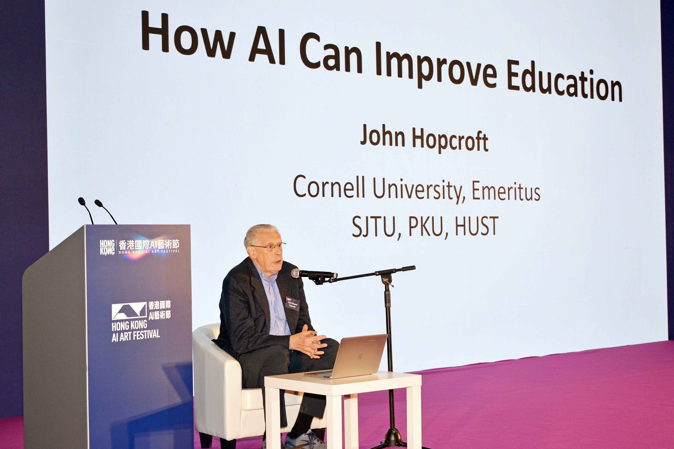 霍普克羅夫特上周亮相首屆香港國際AI藝術節,在台上發表主題演講「AI如何改善教育」。他受訪時提醒現場記者,「人生只有一次」,應該追求內心喜悅;到了他的年紀,就算有錢有豪宅,亦不一定快樂。AI領域變化迅速,今日學到的知識,到明日可能已過時,更關鍵的是培養解決問題的思維與創意。