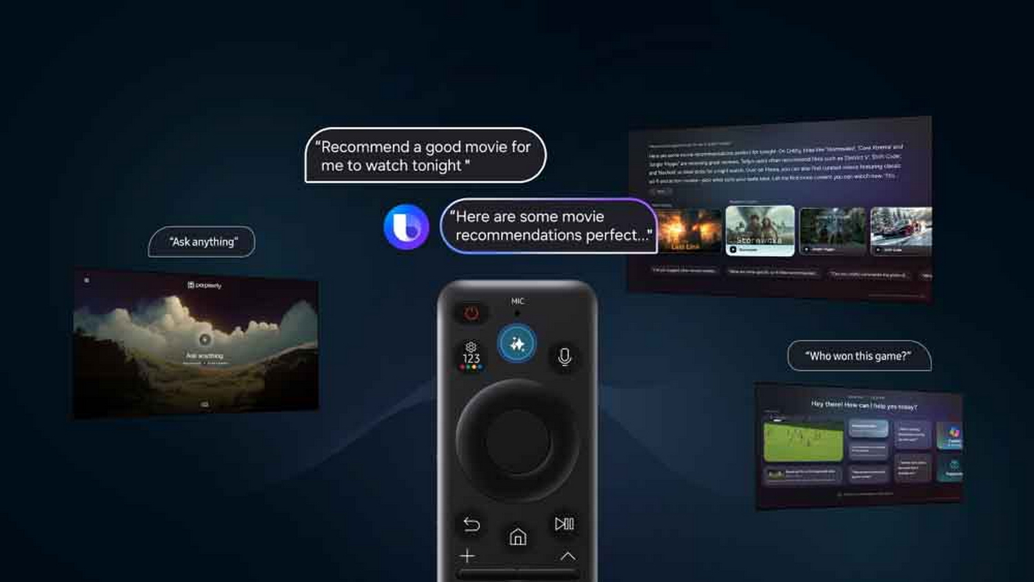 南韓三星(Samsung)計劃在2025年推出的全線產品,包括Neo QLED、Micro RGB、OLED、QLED升級電視、智能顯示器及Movingstyle系列,逐步引入全新的對話式人工智能(AI)技術。新款遙控器(圖)專門設計了AI按鍵,讓用戶就熒幕內容及其他相關資訊,向Vision AI Companion提問。Vision AI Companion支援10種語言,對話更自然,具更深入的脈絡理解及個人化回應。