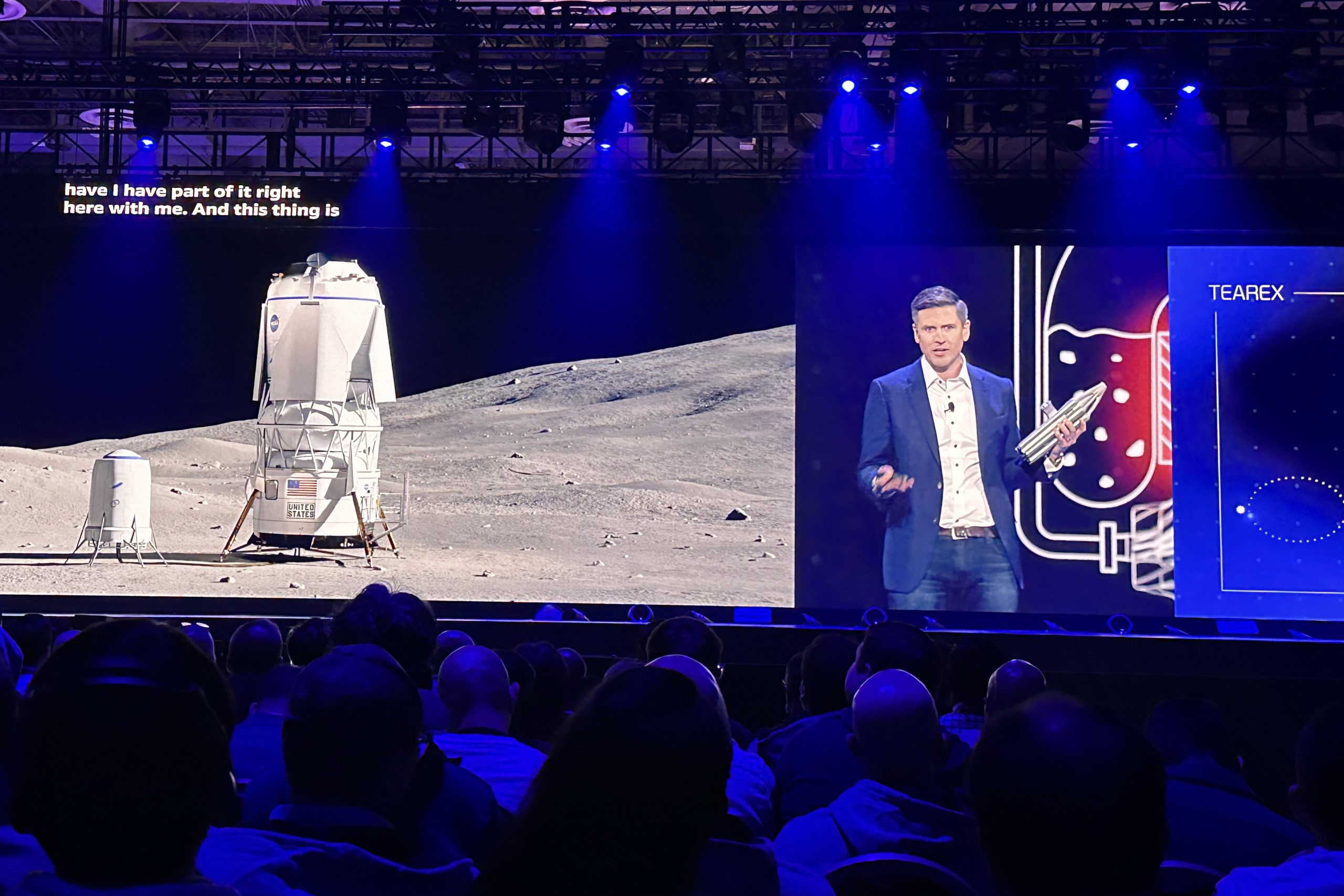 布倫南在現場介紹一款革命性的熱能系統TEAREX,其作用是吸取月球塵埃,再提取熱量轉化為電能,整個設計過程都由AI主理。