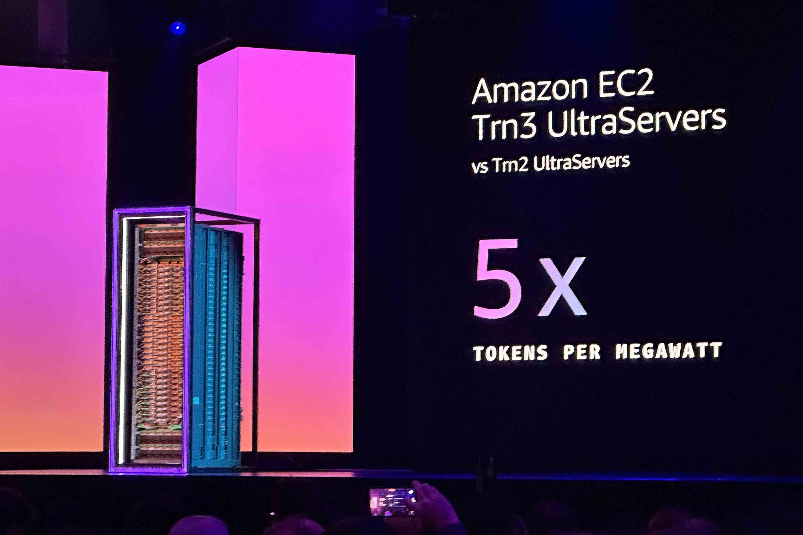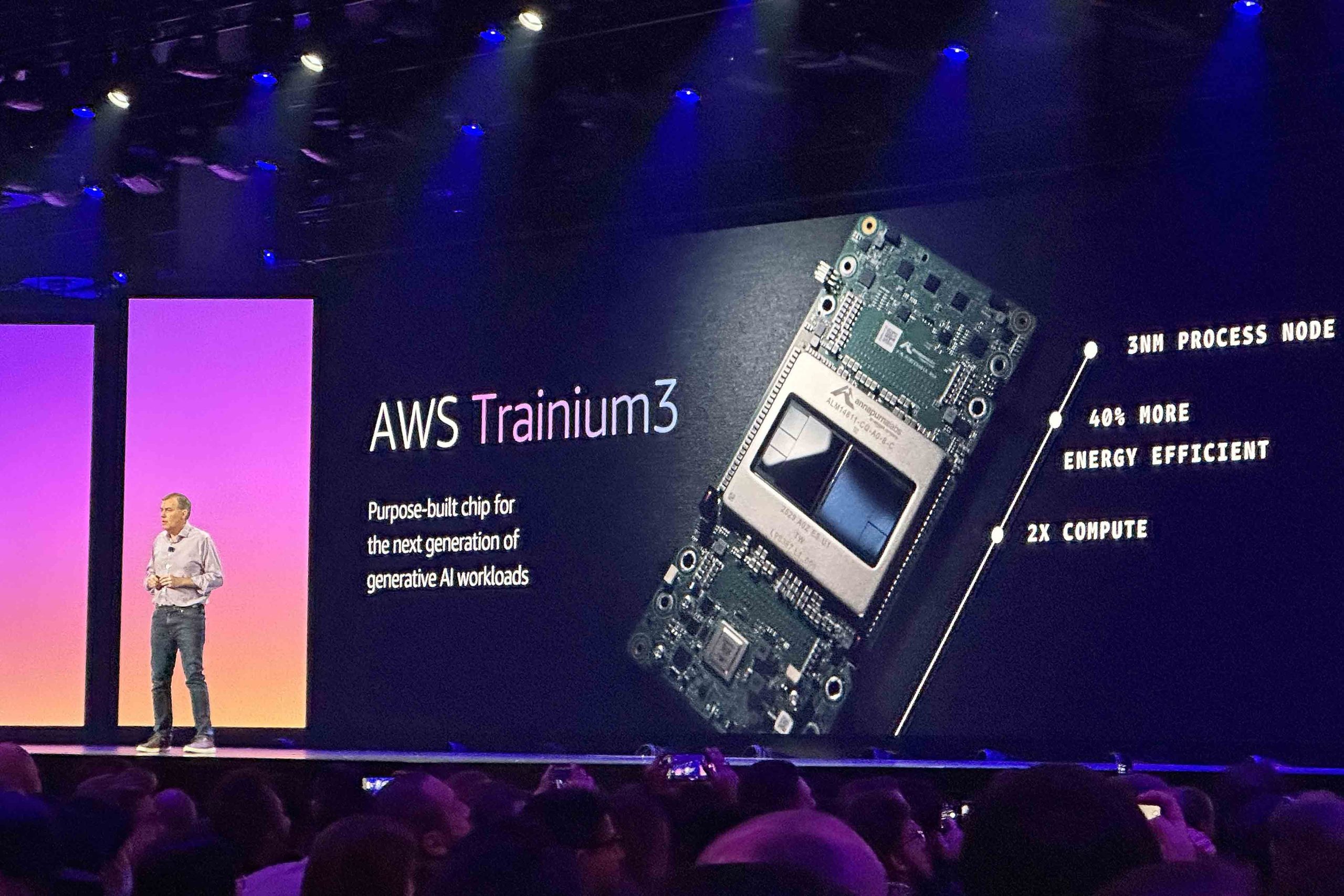 AI基建方面,除了介紹「雷尼爾計劃」數據中心項目,馬特加曼提到AWS AI Factories,讓客戶在自家數據中心內,部署「專屬私有AWS區域」。Trainium 3 UltraServers在單一運算實例中,最多可整合144顆Trainium 3晶片,實現362 PFLOPS及每秒700TB頻寬。他透露,正開發新一代Trainium 4晶片,預計效能比Trainium 3更強勁,例如FP4效能達到6倍、記憶體頻寬為4倍等。
