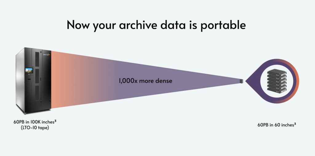 同時,Atlas聲稱儲存密度約為LTO-10標準磁帶的千倍,可在約60立方吋空間內,即接近一公升蒸餾水的大小,容納60 PB(Petabyte)資料,大幅減少機房佔地與能源消耗。