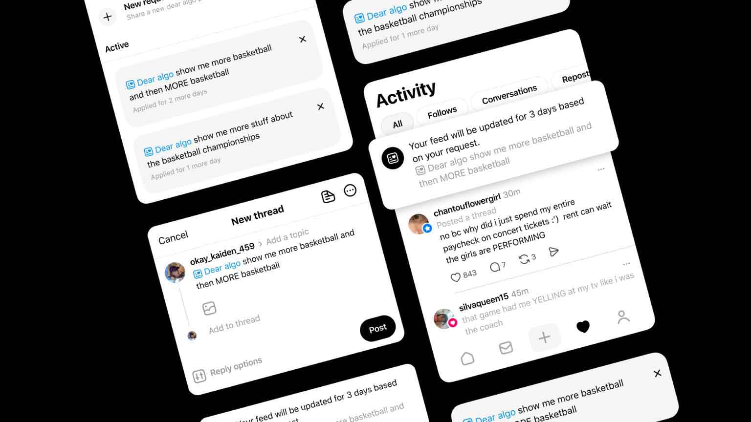 Threads追加AI功能Dear Algo,讓用戶自訂其內容推薦演算法。(Meta網上圖片)