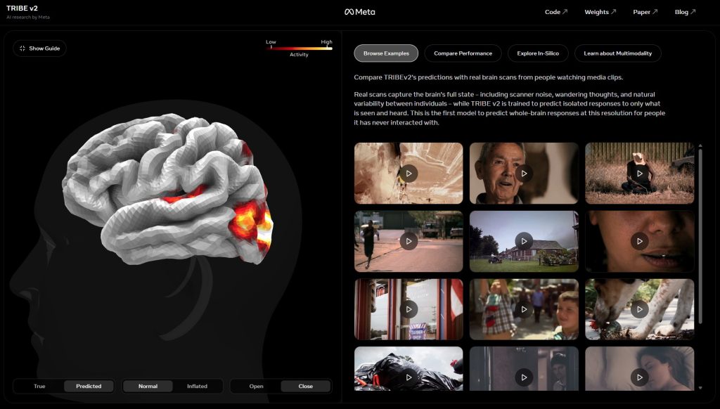 神經科學幾十年來一直面臨一個重大樽頸,就是每項研究都要重新測量實驗志願者的腦部反應數據,令科學界對大腦機制的理解變得緩慢且昂貴,並且難以規模化及整合。Meta基礎人工智能研究團隊(FAIR)發布預測基礎模型TRIBE v2,利用人工智能(AI)而毋須掃描志願者腦部,便可預測人腦對視覺、聽覺及語言刺激的神經反應。