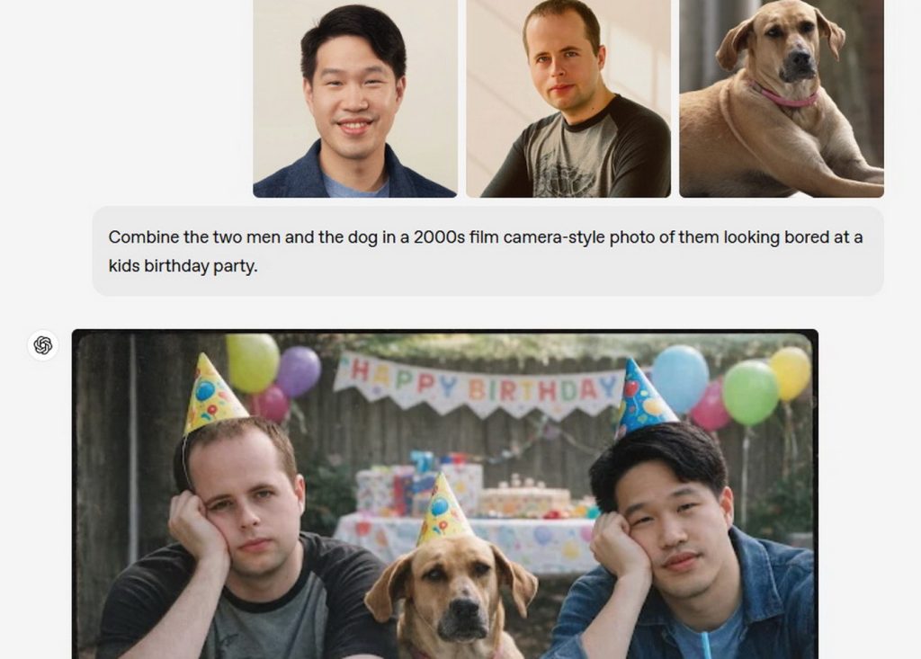 OpenAI示範把多個人物及一隻狗,從多張照片組合到同一場景,例如在小朋友的生日派對中,流露悶悶不樂的表情。同時,OpenAI惡搞行政總裁阿爾特曼(Sam Altman),為他裝扮為K-Pop偶像風、八十年代VHS健身教練、梳打汽水廣告代言人,甚至化身十七世紀名畫《戴珍珠耳環的少女》。