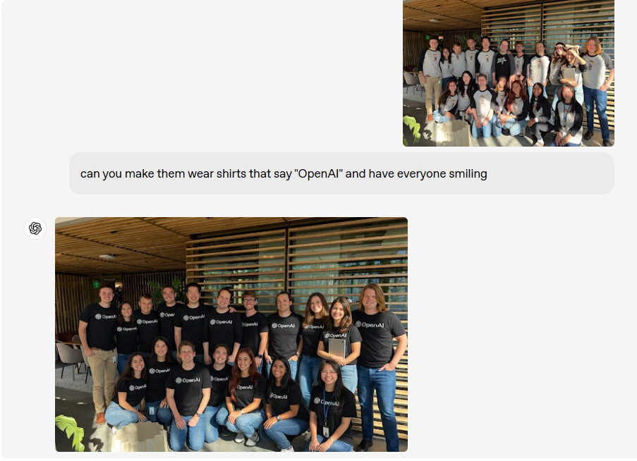 用戶可上傳團體合照,全部人改穿特定服裝。(OpenAI網上圖片)