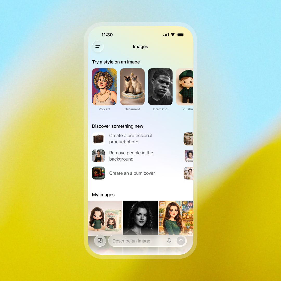 現時在ChatGPT應用程式及瀏覽器新增專門的Images標籤頁,工作方式更像創意工作室。全新的影像檢視及編輯介面,讓用戶輕鬆創建影像,或從熱門提示及預設濾鏡汲取靈感。