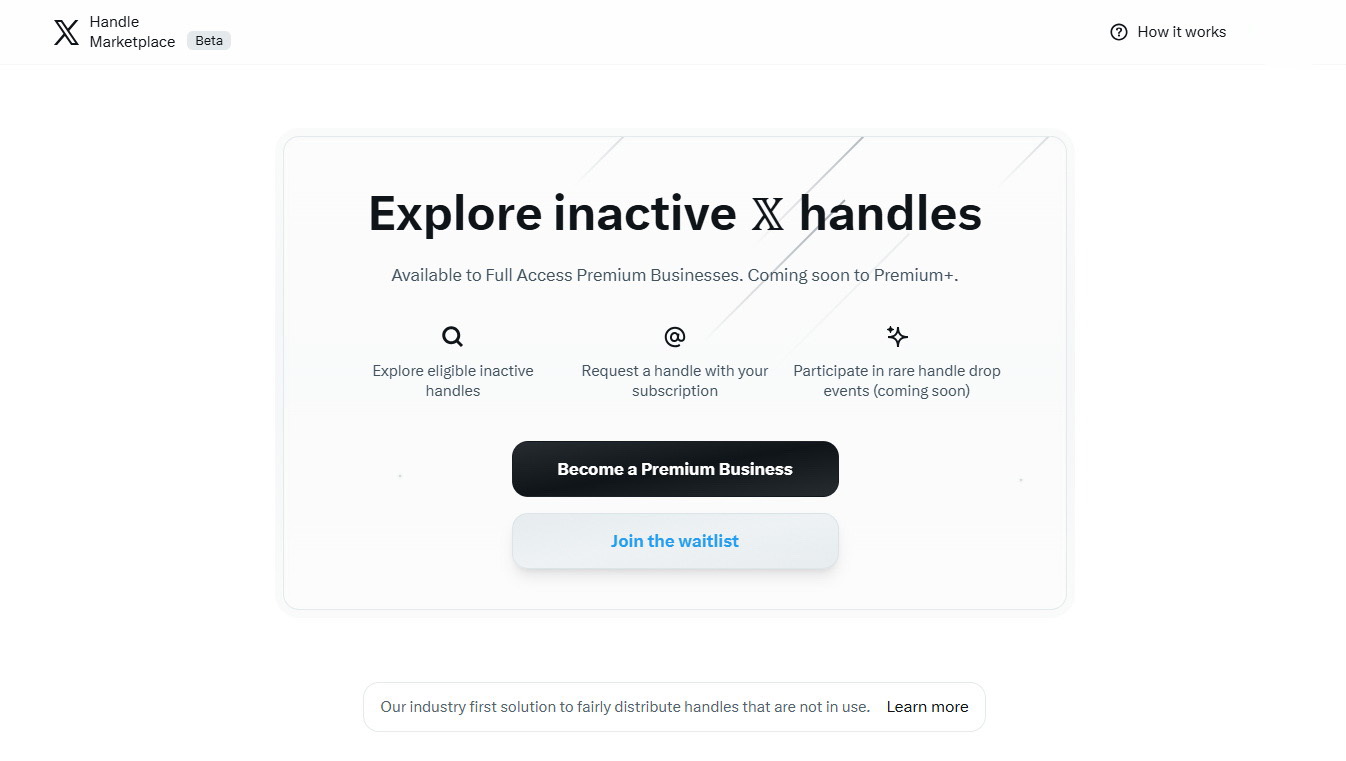 社交平台X正式推出暱稱市集(Handle Marketplace),讓高級或進階的付費訂閱用戶,能獲取其他已被非活躍用戶註冊的名稱。